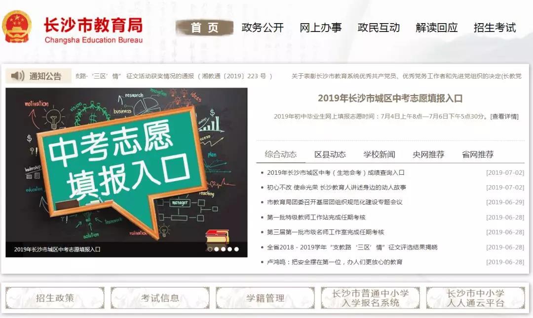 2019年长沙市城区初中毕业生网上填报志愿时间: