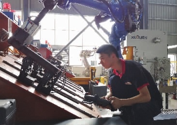 8月23日,飞沃科技的技术员正在对智能生产设备进行调试。记者 潘显璇 摄