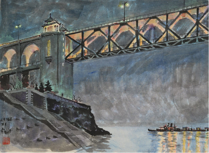 由周令钊创作的《长沙五一广场》画作也是此次展览中的广受瞩目的展品之一。五一广场是长沙历史悠久的商业中心,经历过翻天覆地的变化。这幅作品如实展现了1963年的五一广场,让人们得以一窥长沙的旧时风貌。