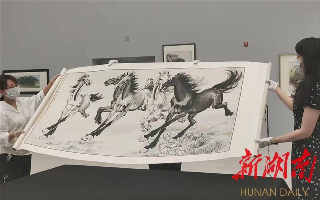 华声在线8月26日讯(新湖南客户端·华声在线记者 廖慧文 实习生 姜勇 通讯员 李叶)8月28日,“大爱·大美——徐悲鸿与周令钊、戴泽艺术成就展”将在湖南省博物馆开展。此次展览共组织湖南省博物馆、北京鸿文书画院、北京徐悲鸿纪念馆和中央美术学院美术馆及周令钊、戴泽等相关单位和公私藏家所藏徐悲鸿、周令钊、戴泽三位艺术家的艺术作品240余幅参展,画作题材包括人物、花鸟、走兽、风景等各方面。今天,新湖南客户端记者提前去探展。