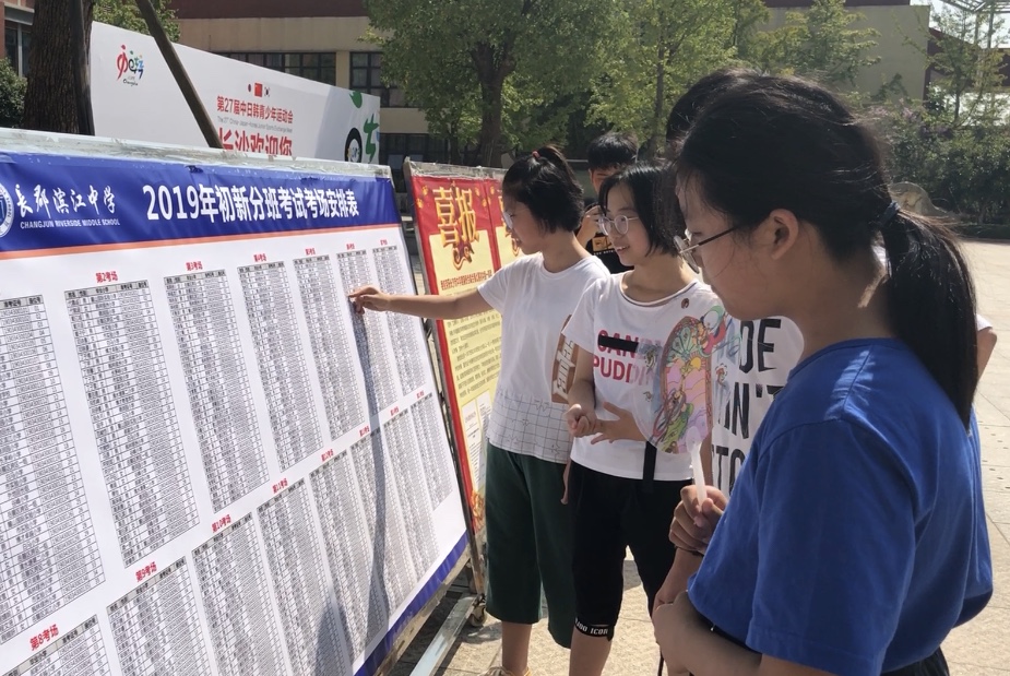 上午8点,在长郡滨江中学门口,该校512名新生一律凭小学生学籍手册进入考场,家长们则被“拒之门外”。