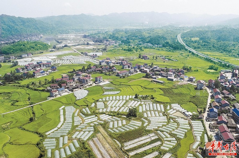 8月14日,沅陵县凉水井镇松山边村,村庄整洁有序,绿色的田野上,蔬菜大棚犹如播撒的珍珠。近年来,该县加强生态文明建设和城乡环境整治,积极发展富民产业,推进乡村振兴。