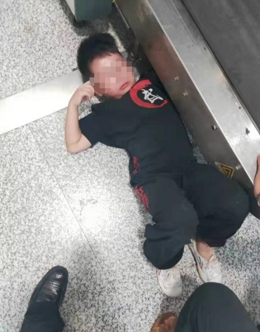 经了解,小晏暑假里跟着教练学武术,最近迷上了小木棍。当日和爷爷在候车室,爷爷刚离开去厕所,小晏便耍起了木棍,结果发生了这有惊无险的一幕。