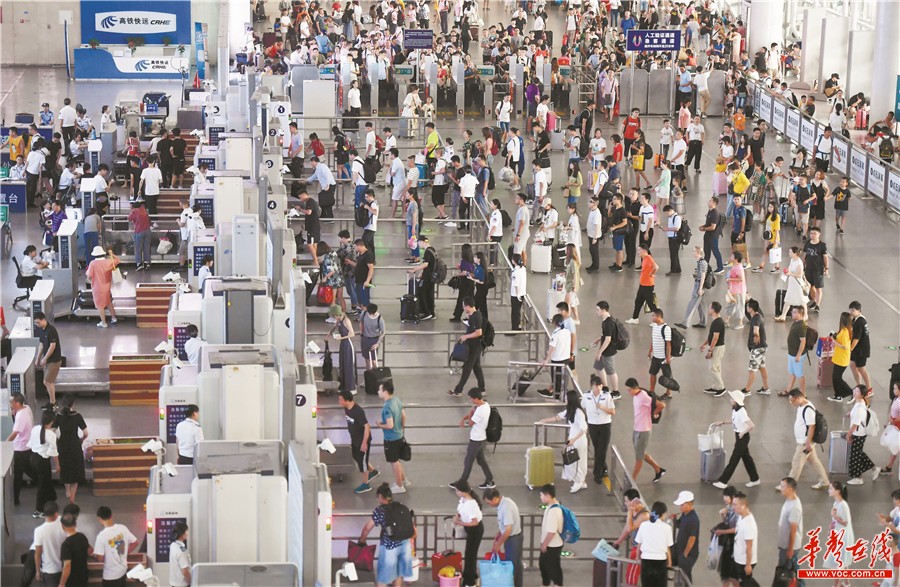 8月5日,长沙火车南站,旅客排队有序进站。目前,长沙南站进入暑运高峰期,日均发送旅客超12万人次。客流主要以学生流、旅游流、探亲流为主,商务流为辅。