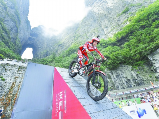 华声在线8月1日讯(湖南日报·华声在线记者 宁奎 通讯员 丁云娟)8月1日,极限攀爬摩托车手耿杰在张家界天门山成功完成“摩登天梯”极限挑战,创造了摩托车单向行驶攀爬台阶坡道距离最长和落差最大两项极限运动世界纪录。这也是在世界范围内,该项目选手首次在天然地形下挑战如此陡、窄、长的台阶坡道。