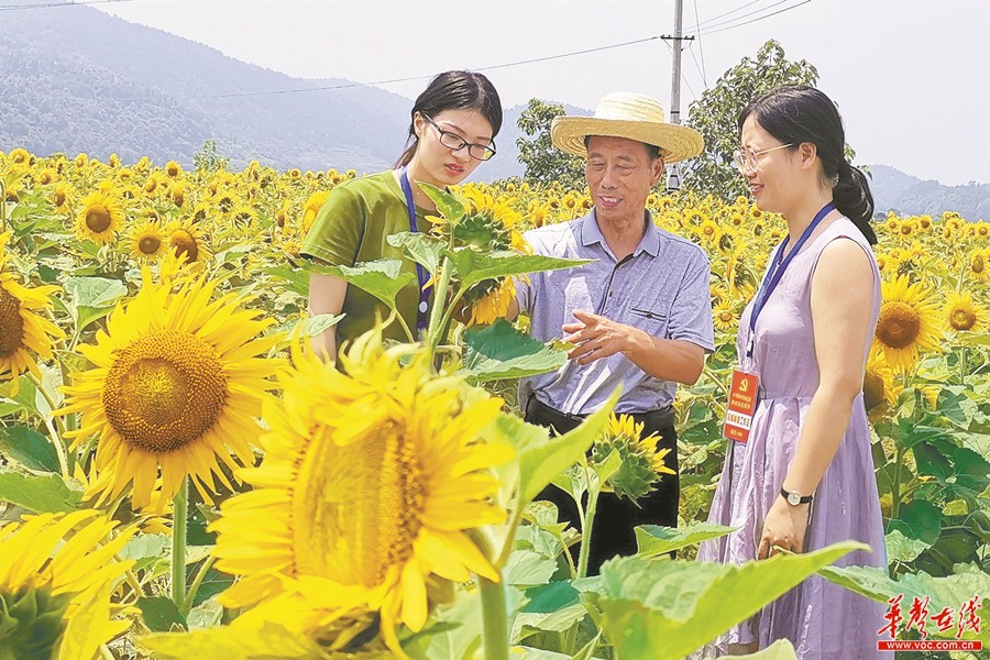 8月1日,邵阳市隆回县纪检监察干部在三阁司镇中洲村向日葵种植基地,向农户了解扶贫项目实施情况。连日来,邵阳市纪委监委组织纪检监察干部下沉一线,通过开门接访、田头走访、带案下访、进村接访、上门回访等方式,着力擦亮监督“探头”,努力化解信访难题,提升群众获得感、幸福感。