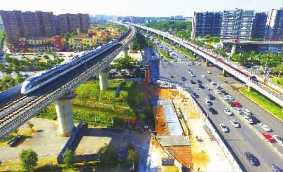 7月31日,长沙市芙蓉南路友阿奥特莱斯段,芙蓉大道快速化改造项目位于长株潭城际铁路与长沙地铁1号线之间的配套辅路正在加紧建设。芙蓉大道快速化改造项目全长26.2公里。改造完成后,共消除26个灯控路,通行时间预计由原来的40分钟减少为22分钟。