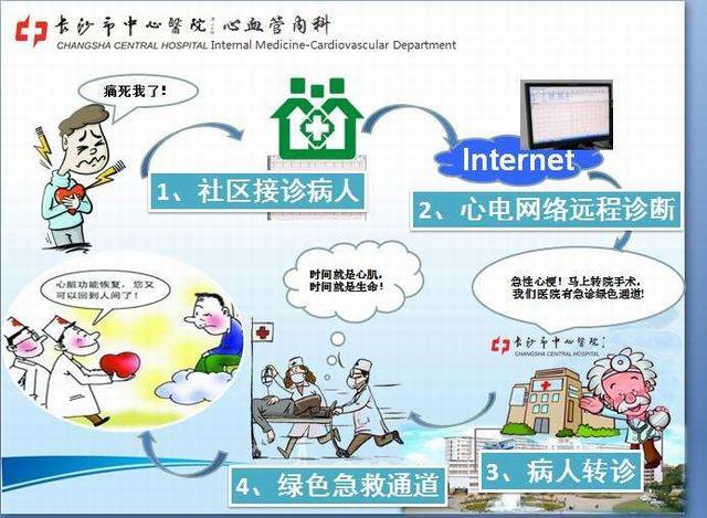 2015年3月起,长沙市中心医院先后在雨花区11家医联体的基层医疗机构共13个医疗点建立了心电远程诊断平台,至今雨花区各社区服务中心利用该平台采集常规心电图6万多人次,该院会诊的常规心电图量约2.8万人次,报告危急值61例,为危急重症患者转诊提供绿色通道。