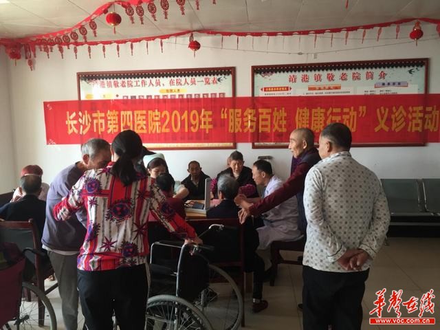 2015年,长沙市第四医院成立医养联盟中心,推行“医养结合”协议合作服务。目前,签约养老机构30余家,每年为近4000名老人提供健康服务,开展义诊(巡诊)200多次,举办健康教育知识讲座60多次,开通绿色通道、优先安排老人就医1000余人次,免费接送老人住院约600人次,享受无陪护病房服务的老人近1000人次。