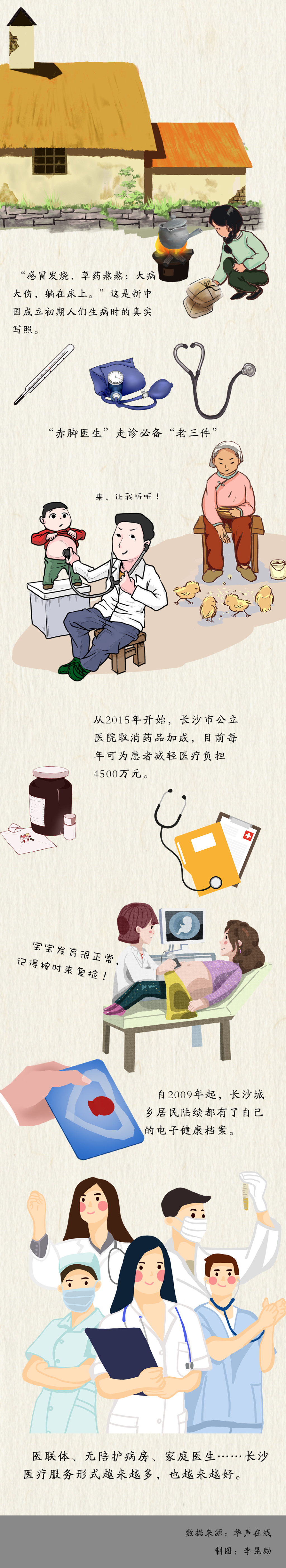 70年时光流转,时至今日,在长沙老百姓的故事里,看病难看病贵问题得到缓解,有病治病、无病疗养、医养结合新观念深入人心。健康长沙,因逐步完善的城乡居民医疗卫生服务体系,逐渐写进了每个市民的生命档案里。