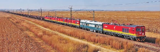 中车株机公司研制的电力机车运行在南非铁路线上。