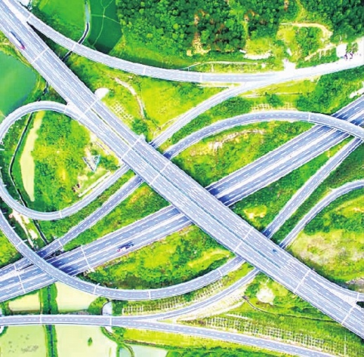 9月19日,新竣工的江华瑶族自治县S355线二级公路勾挂岭路段公路桥,犹如巨龙卧在山间。道路让该县码市、大锡、水口、小圩等乡镇10余万瑶胞出行节省近一半时间。