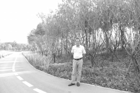 23日下午,吴启杰带领记者来到连山村老家旧地。如今此地被堆成了一个小山坡,上面植满了树木,已经看不出当年的模样。吴启杰还清楚地记得老房子的位置,他站在一棵树旁,说:“这是照片中我母亲所站的位置。”