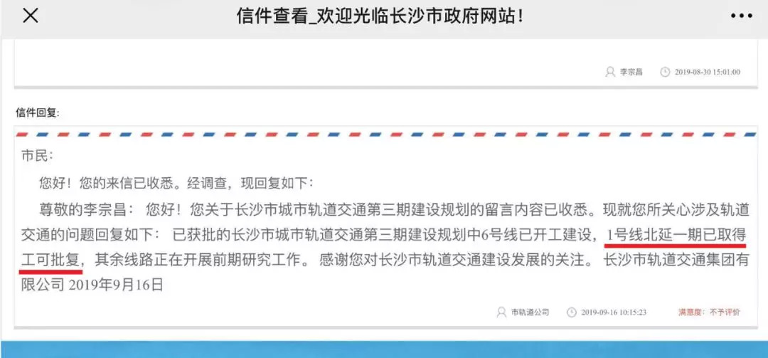 市轨道公司在市长信箱官方回复:已获批的长沙市城市轨道交通第三期建设规划中6号线已开工建设,1号线北延一期已取得工可批复,其余线路正在开展前期研究工作。