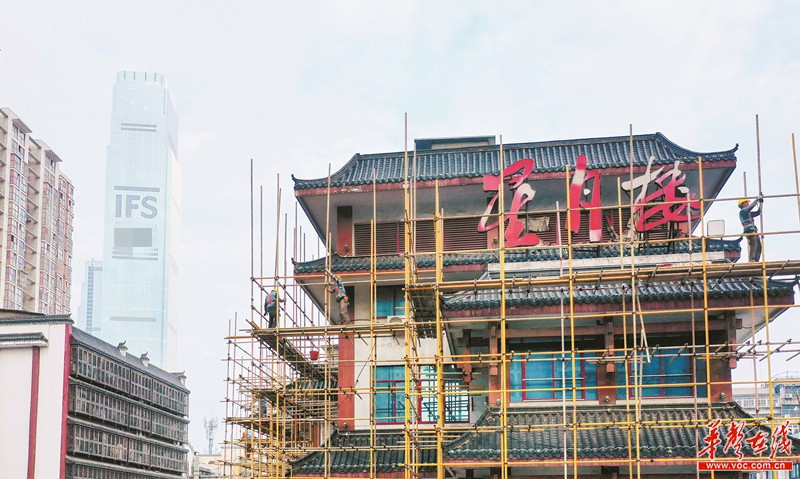 10月23日,工人在进行坡子街沿线商铺外立面升级改造。近日,长沙坡子街提质改造项目启动,将对街道路面、商铺外立面、人行道和地下管网进行全面升级改造。提质改造完成后,道路将更平整、通畅,对老街历史文化的挖掘和商业氛围的提升起到积极作用。湖南日报·华声在线记者 辜鹏博 摄