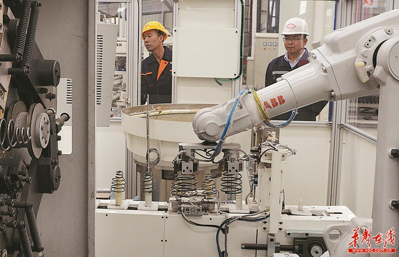 10月24日,张吉怀铁路吉首轨枕场,智能机器人在进行轨枕构件生产作业。10月份以来,由中铁上海工程局承建的张吉怀铁路吉首轨枕场完成智能化改造升级投产,通过智能机器人、物联网、大数据、PHM等技术运用,实现智能管理、智慧生产,承担张吉怀铁路全线76.88万根轨枕预制任务。姚方 摄