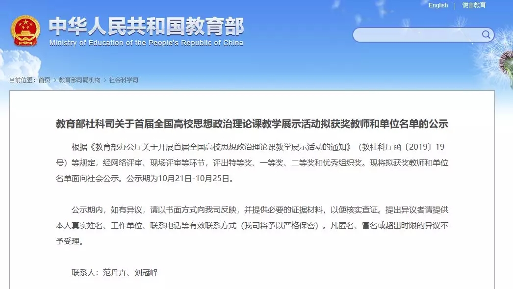 首届全国高校思想政治理论课教学展示活动拟获奖教师名单