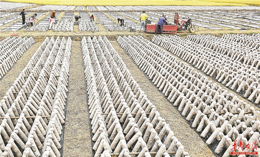 10月22日,宁远县舜陵街道麻池塘村,村民在刚收割完晚稻的田里放置黑木耳菌棒。近年,该县大力推广“水稻-黑木耳”轮作,促进农民增收。目前,舜陵街道黑木耳种植面积达500余亩,“水稻-黑木耳”轮作每亩收益可达4.5万元以上。乐水旺 谢俊松 摄影报道
