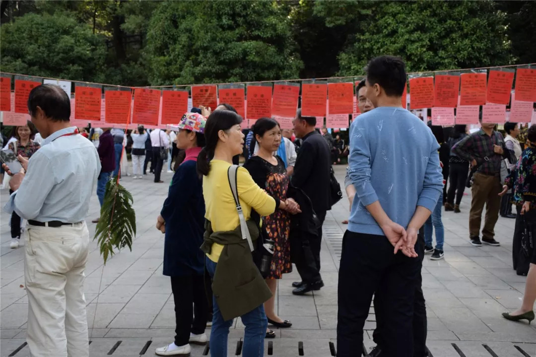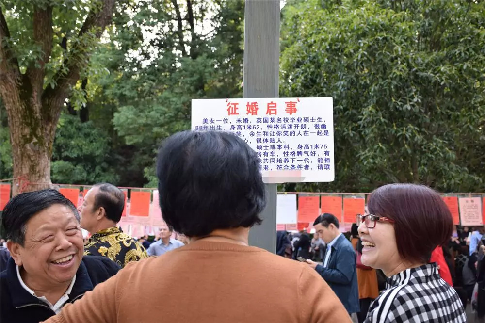 有的父母在认真地拿手机给中意的“征婚启事”拍照,有的在四处寻觅着一些看起来友好的眼光,抓住机会立马上去搭讪,有的已经热烈地攀谈起来。