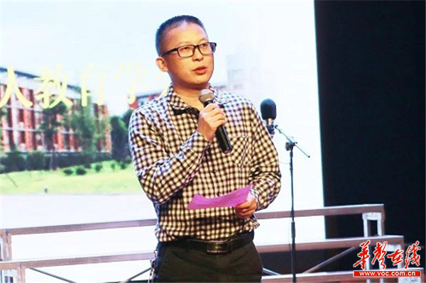 株洲市教育局职成科科长武志伟宣布比赛结果,株洲市幼儿师范学校以9.92的高分荣获本次比赛一等奖第一名,并将代表株洲市参加全省展演。