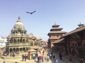 国庆期间,来尼泊尔的中国游客很多。在杜巴广场,随处可遇到说普通话的中国游客。我的两位湖南朋友也专程来尼泊尔旅行,在游览完杜巴广场后,来自益阳的小简在朋友圈写下:“随处可见的古迹建筑、精美的雕刻和神秘的寺庙让人流连忘返;呼啸而过的摩托车,乌压压的鸽子群,又让杜巴广场热闹得像个大集市。”