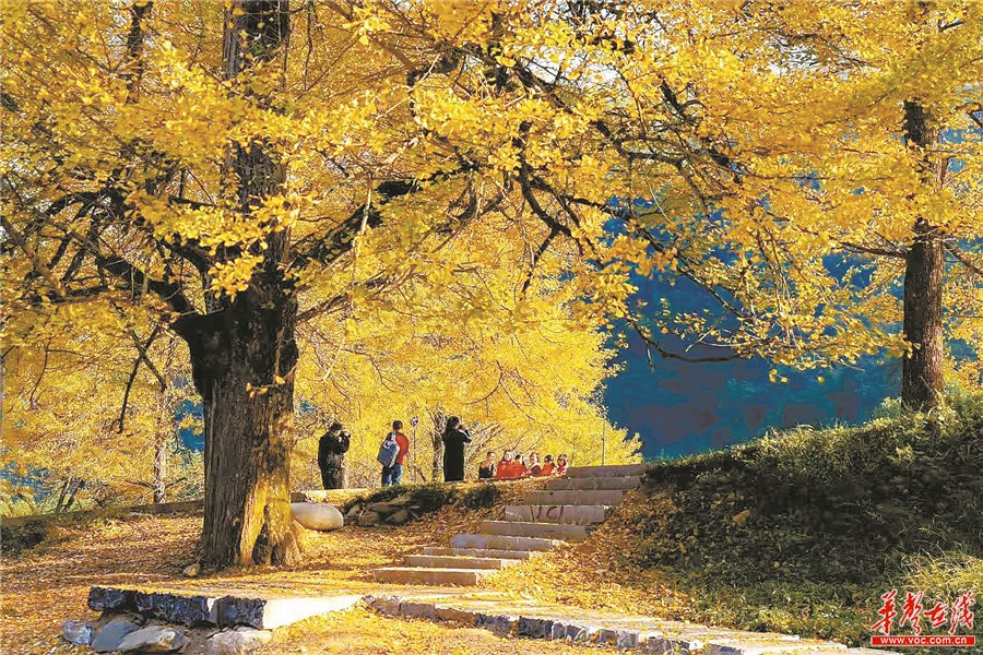 11月20日,游客在永州市桐子坳景区观赏银杏。11月19日,桐子坳景区晋级为国家4A级旅游景区。 刘斌 潘芳 摄影报道