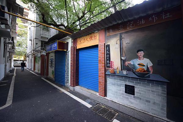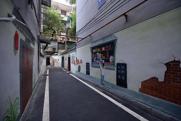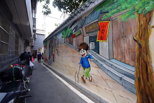 记者从祝威岗巷进入,巷子虽然不宽,但是却非常整洁干净,墙上的那几幅墙绘一下子就吸引住了记者的眼球。墙上画的 28 单车、小黑白电视机、小卖部、裁缝店、滚铁环、摔纸板、跳房子 、教室里的值日表、穿着小背心含着老冰棒玩着游戏机的小屁孩 ……"60"、"70"、"80" 后们,一定觉得非常熟悉。" 我们这附近就有三个幼儿园,过往的小朋友和家长们比较多,所以 我们会选择一些比较有童趣的漫画。" 沙河社区党总支书记熊政说,特别是像跳格子、滚铁环、拍纸板等等比较经典的游戏都是 80 后常玩的,可以让大家重温一下经典。另外,像麻园塘巷、多福里巷等等街巷中都有不少墙绘,一些电线杆上也被画上了小黄人的卡通漫画。在麻园塘巷的尽头,还有一个 3D 版的 " 灌篮高手 " 的人物漫画,这里成了一个网红打卡点,不少本地人、外地人都会来这里打卡拍照。