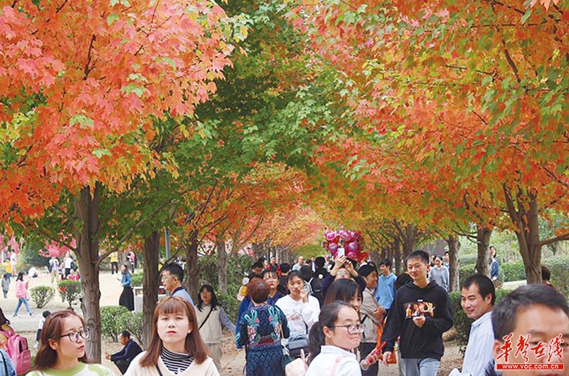 11月17日,市民观赏湖南农业大学的“枫”光带。 记者 石芳宇 摄