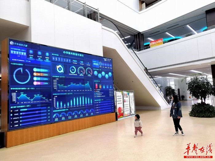 宁乡市办事服务数据可视化大屏,数据实时显示。