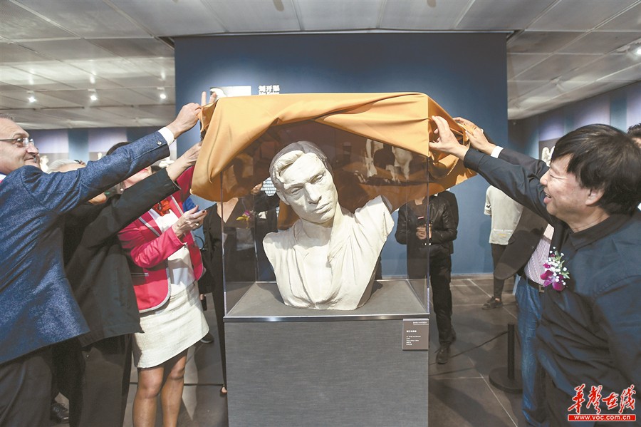 11月5日,嘉宾为让·朴舍1907年创作的雕塑作品《锻工半身像》揭幕。当天,法国雕塑巨匠让·朴舍雕塑原作中国首展举行,5件经典雕塑作品在李自健美术馆“刘开渠与二十世纪中国美术展”中展出,展览将持续至12月1日。