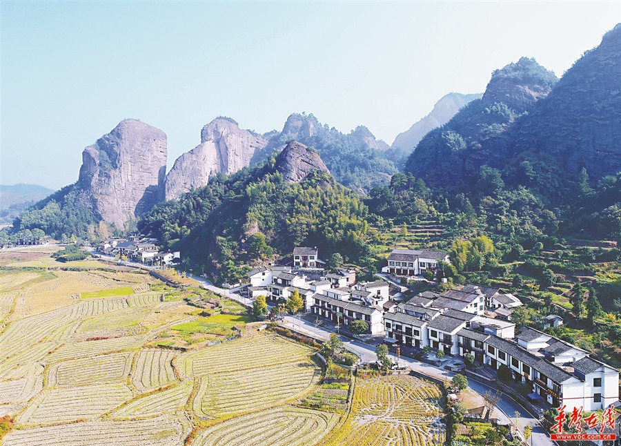 11月4日,新宁县峎山国家级风景名胜区骆驼峰景点旁,新建成的徽派民居建筑群干净整洁。今年,新宁县峎山镇支持景区居民对民居统一规范改造,开办农家乐,设立购物摊位,吸收了近千名村民在家门口就业,为居民新添了致富门路。