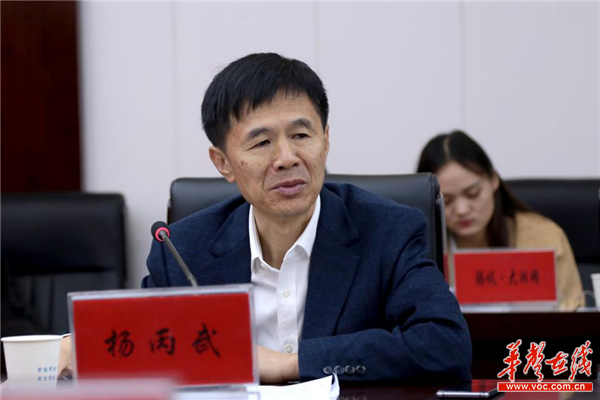 常德经开区工委委员杨丙武向媒体团介绍常德经开区发展情况。