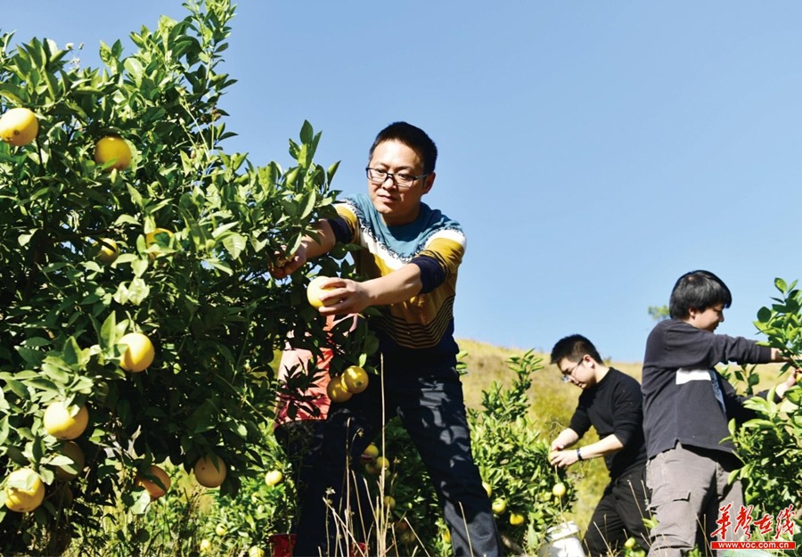 10月31日,蓝山县太平圩镇桐木林村水果基地,党员干部在帮助果农采摘脐橙。连日来,该县结合“不忘初心、牢记使命”主题教育,组织党员干部进基层访农、助农、惠农,为群众解决实际问题。