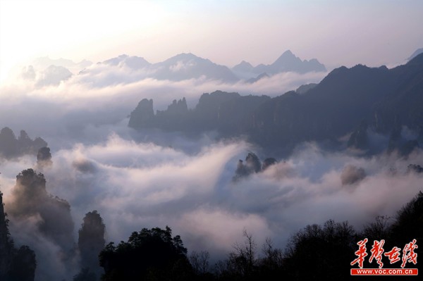 12月30日,持续放晴的张家界武陵源景区天子山出现如梦似幻的云海云瀑景观,宛如一幅幅水墨画卷,美不胜收。