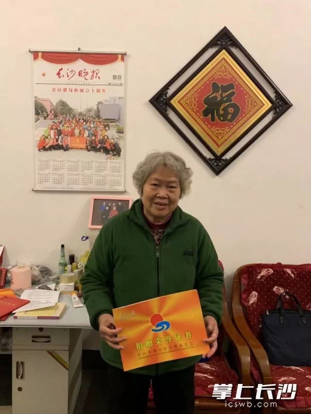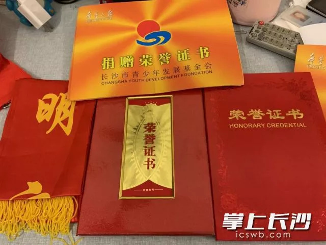 肖子文老的捐赠证书。长沙晚报全媒体记者 邓艳红 摄