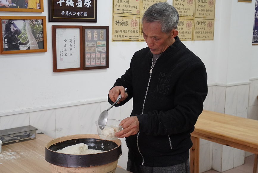 “我和你们说,做甜酒可是个力气活,我20多岁就开始做这个,干了快一辈子了,没个好身体还真干不了。”杨爹本名杨友良,是个地地道道的老长沙。做甜酒的手艺是从父亲那里传下来的,之前只是自己家里吃。因为手艺好,1987年,杨爹开始正式做起甜酒生意养活全家,一做就是三十多年,也火了三十多年。