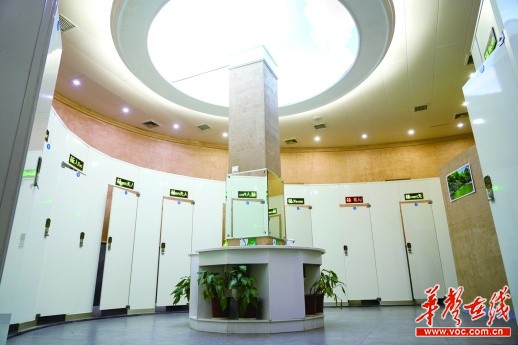 刚改造完成的长沙火车站第五候车室的公共厕所,候车旅客“方便”时再也不用捂着鼻子。在改造中,使用了一款“黑科技”产品,参考太空舱厕所负压原理,模拟大自然降雨除尘,实现水气溶臭,净化气体。通过相关设备做到源头除臭、及时除臭。