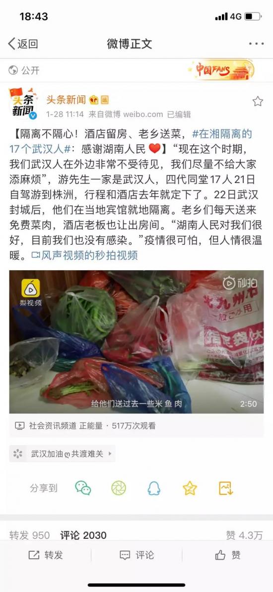 非科学的极端做法不仅对封城之内抗击疫情的湖北人造成二次伤害,也让因各种原因滞留外地的湖北人或有湖北旅行史的人感到恐慌和心寒,但在湖南长沙却出现了温情的一幕。