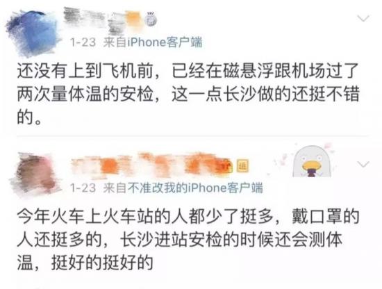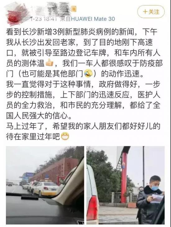 而在长沙的高速公路口,市民们收到了来自戴着口罩、穿着防护服的工作人员的特殊问候——“新年好!让我们为您测量一下体温。”