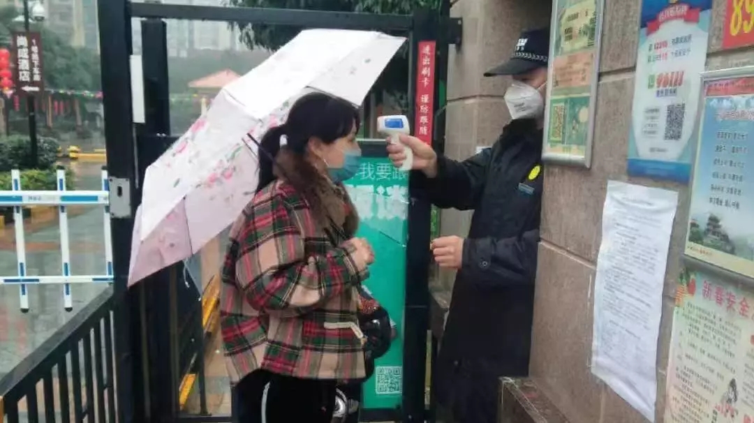 【记者速记】中建物业正在对进入长沙雨花区中建信和城小区人员进行体温检测,并严查人员来源,核实登记,对发烧、咳嗽人员重点关注、防控,一旦发现异常要求报医处理。