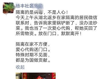【记者速记】宁乡市大屯营镇为湖北返乡人员建起了“临时党支部”,肩负特殊任务的支部阵地是微信。通过微信倡议:在疫情面前,作为党员不回避,不退缩,迎难而上,为湖北返乡群众加强鼓劲;发挥党员先锋模范作用,带头并劝退返乡群众不走亲访友,做好居家隔离。