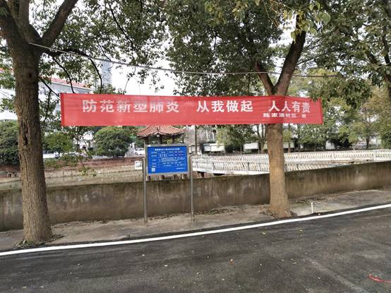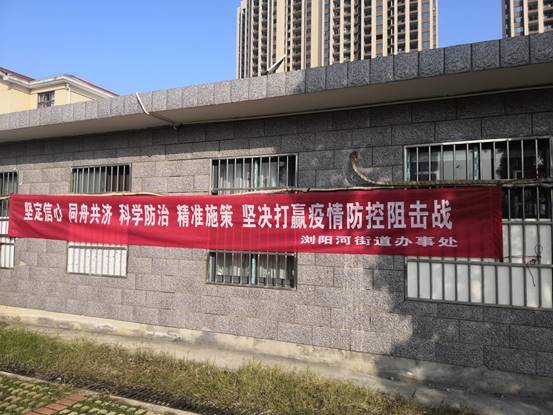 【记者速记】长沙市浏阳河街道办事处陈家渡社区在显著位置挂起了防范疫情的横幅。