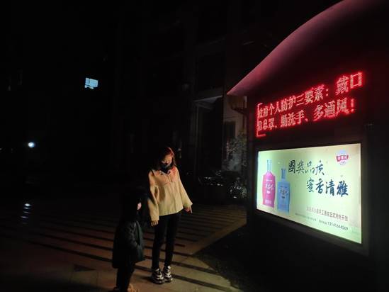 【记者速记】“个人防护三要素:戴口罩、勤洗手、多通风!”长沙宁乡市铂金汉宫小区运用LED电子屏、发放宣传单等方式公布疫情,宣传健康教育公益广告,提高公众自我防护意识。