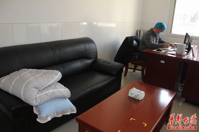 高桥镇卫生院党员干部顾不上回家和休息,轮流在办公室的沙发上打个盹,缓一缓精神。