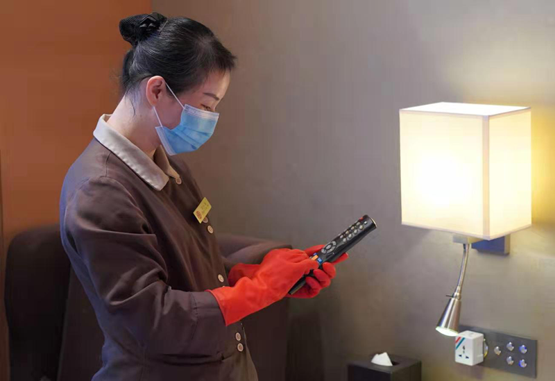 目前,华天旗下各酒店均成立了工作组,对入住客人量体温,提供免费口罩。对大堂、走廊等公共区域,按卫生防疫部门要求进行消毒;对电梯按钮等特别敏感区域,每隔一至两小时消毒一次;对客房内遥控器、马桶盖等,严格实施一客一消毒,以保障顾客安全。