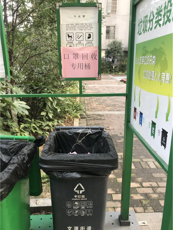 防治二次污染,设置废弃口罩集中投放垃圾桶