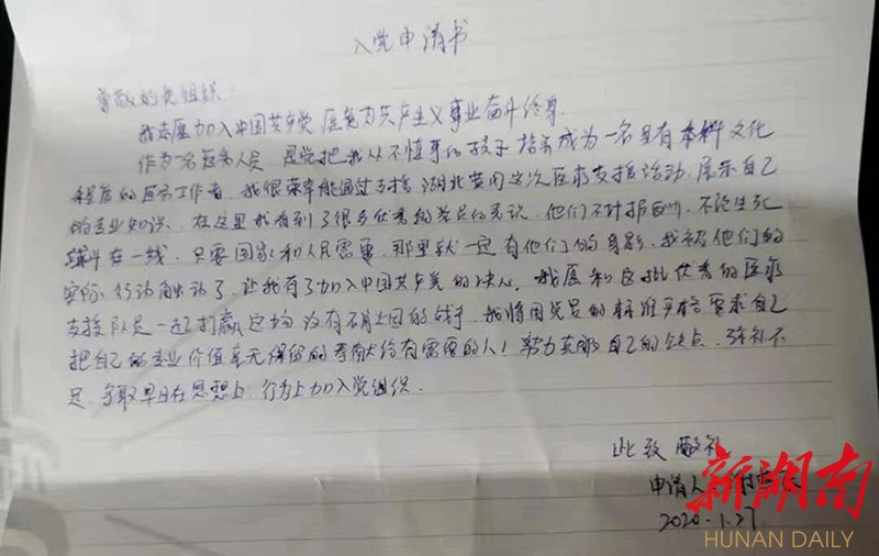 华声在线1月28日讯(湖南日报·华声在线记者 段涵敏 通讯员 焦海禄)“目前我们已经全面投入到黄冈市2个医院的医疗救治工作,所有队员实行三班倒,今天轮班的队员已经到医院工作了。医疗队临时党委成立1天时间,就收到了24份入党申请书,大家情绪非常高昂和饱满。”1月28日上午,新湖南客户端记者连线湖南省首批援鄂医疗队队长高纪平,他向记者介绍。