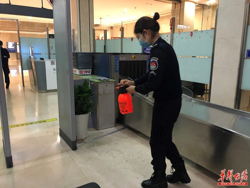 同时,安全检查站根据《长沙市机场、车站预防新型冠状病毒感染的肺炎消毒工作方案》,每日多次对安检通道、开包间、备勤室、勤务用具等进行酒精消毒;自购医疗垃圾自弃桶放置在安检通道后方,集中处理废弃的一次性口罩、手套等防疫用品,防止随意丢弃带来的不利影响。