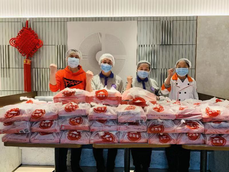 武汉肯德基必胜客员工志愿者在为医务人员准备餐点