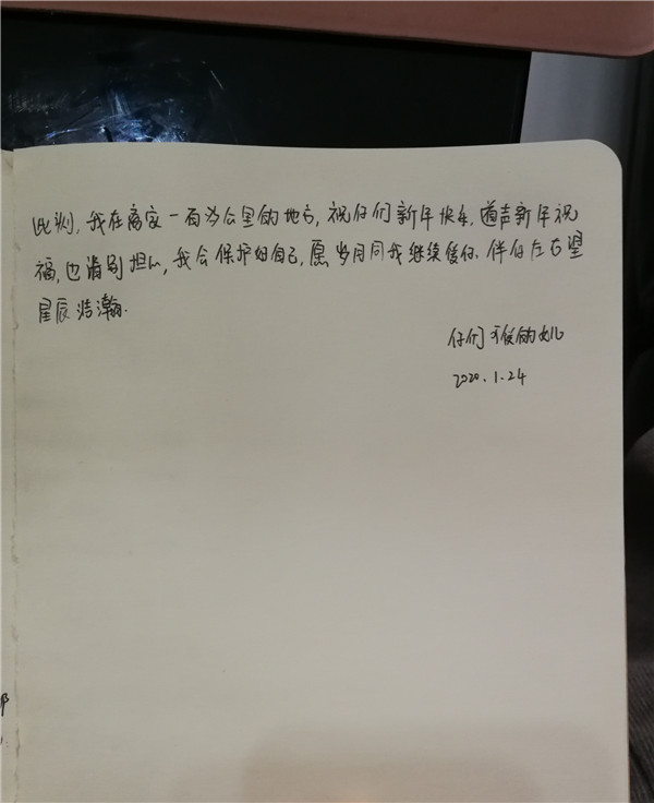 你们好!又是一年除夕,又是一年的爽约。自从工作后,越来越少的陪伴,是生活里最大的遗憾。四年,我总是在往前走,走向更远更明亮的路。却忽略了背后默默付出和担心的你们。自从那天长沙被证实有新型冠状病毒感染的肺炎案例之后,你们每天电话里最开始担忧,后来变成了理解。你说:虽然我不知道你现在在经历着什么,但这是你自己的选择。当然我们是支持你的,我们唯一的要求就是你要保护好自己,要平安。所以即使你很忙很累,也想听听你的声音,我才安心。瞬间泪目。